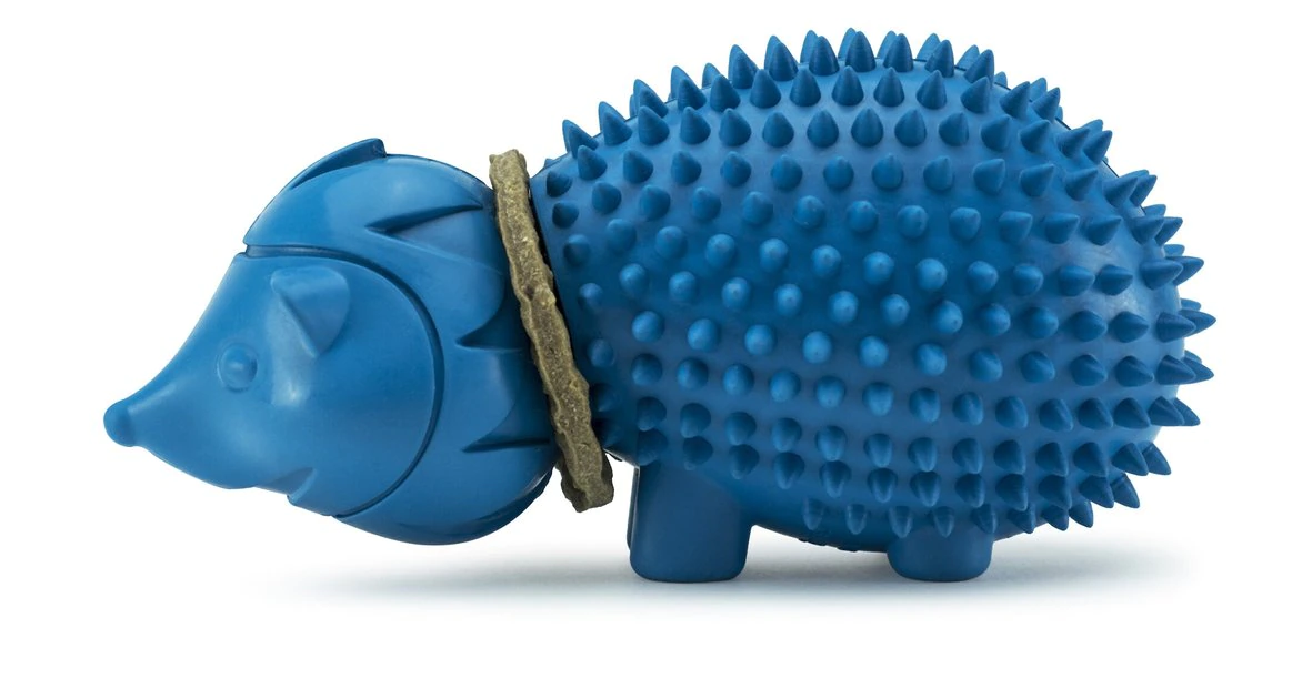 The PetSafe Busy Buddy Hedgehog Dog Toy is perfect for your picky pooch looking for a tasty new toy to chew on. You can keep your best bud entertained with the included dog-liscious rawhide treat rings. Made with a locking mechanism to keep each of the 4 included treat rings in place, your pup can give the PetSafe Busy Buddy Hedgehog Dog Toy his all without you worrying about the treat rings breaking free from the toy. And when the rings have finally been chewed, you can stock up on more to keep your guy busy and continue to reward good chewing habits during his long playtime sessions.