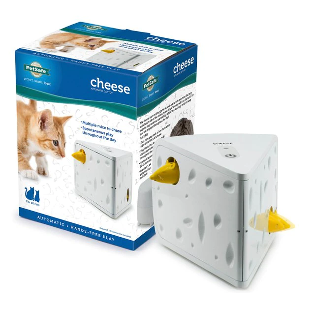 Every cat loves a game of peek-a-boo, and with the PetSafe Cheese Cat Toy they can play all day long, even when you’re not home. This interactive toy has two mice that pop out of each side of a block of Swiss cheese, enticing your cat to hunt and pounce. The Play While You Are Away mode keeps your kitties engaged throughout the day by turning itself on and off, for a total play time of 45 minutes over the course of six hours. Ensure your cats don’t get bored while you’re at work, out on the town or just unable to play all day.
