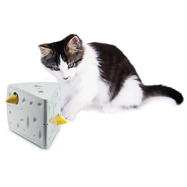 - This toy has two mice that play peek-a-boo from either side of a block of cheese.