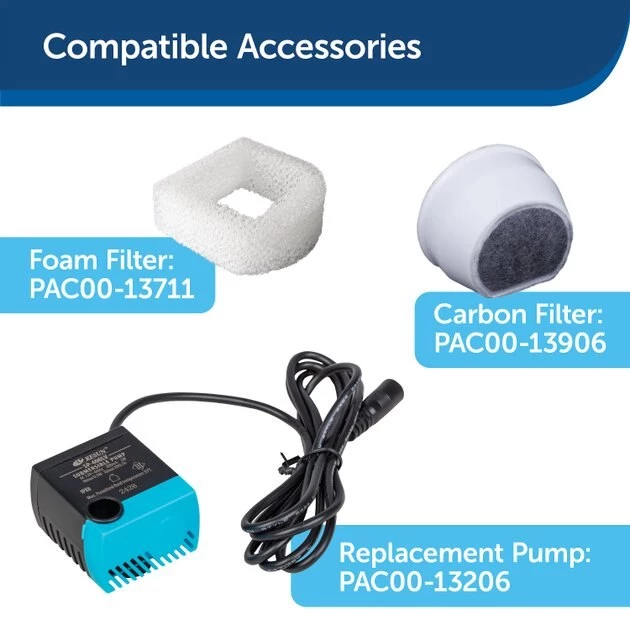 Creekside Ceramic Pet Fountain, Replaceable Carbon Filter, Replaceable Foam Filter, Quick Start Guide