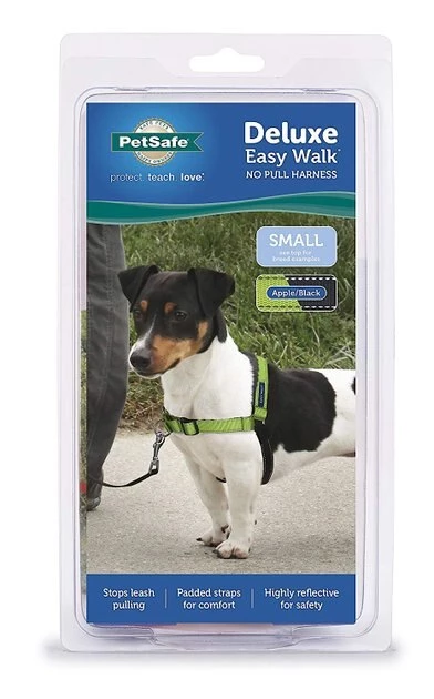 The PetSafe Deluxe Easy Walk Nylon Reflective No Pull Dog Harness is the paw-fect way to counteract your canine companion’s desire to pull. Unlike standard collars or back-attachment harnesses, this harness allows you to attach your dog’s leash at the front of her chest. That means, when she pulls forward, she will feel your weight from one side and will be less inclined to pull. This deluxe version is designed with added neoprene straps for cool comfort and reflector strips to help keep your pup visible in low-lit settings. Created by a veterinary behaviorist, this harness is trusted by countless dog parents and trainers each year. Your buddy deserves the best, and PetSafe is the paw-fect way to help keep her healthy, safe and happy!