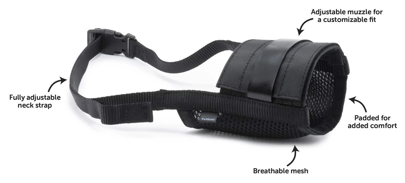 Help stop your dog from preforming destructive and potentially dangerous behavior with PetSafe’s Dog Muzzle. This handy piece help prevent nipping, biting and barking, while the design helps reduce stress for your sidekick. It has an adjustable neck and snout, soft padding, breathable mesh webbing and a mouth opening, so your dog can pant and breathe easy. PetSafe’s Dog Muzzle is paw-fect for trips to the vet, grooming sessions and reactive sidekicks.