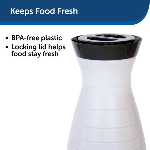 - Hopper is made of BPA-free durable plastic and locks in place to prevent knock over and spills.