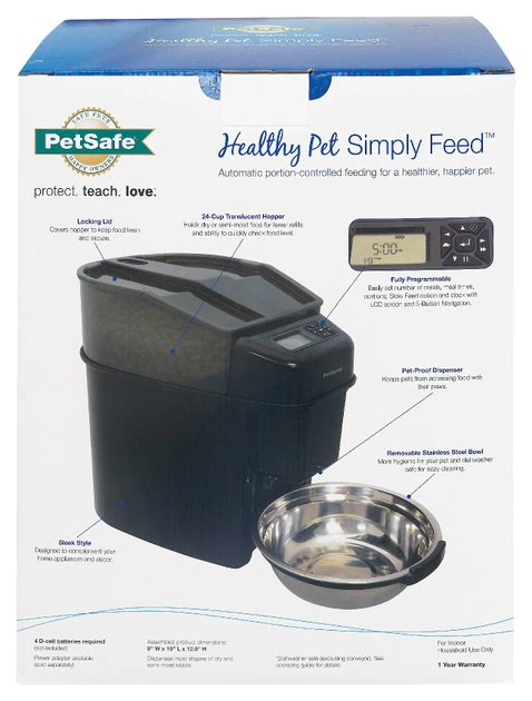 - FLEXIBLE PORTIONS: Schedule 1/8 cup to 4 cups per meal depending on your pet’s unique needs; requires 4 D-cell alkaline batteries (not included) or power adaptor (adaptor sold separately)