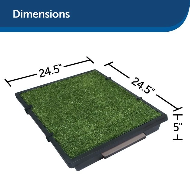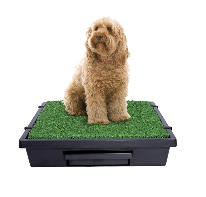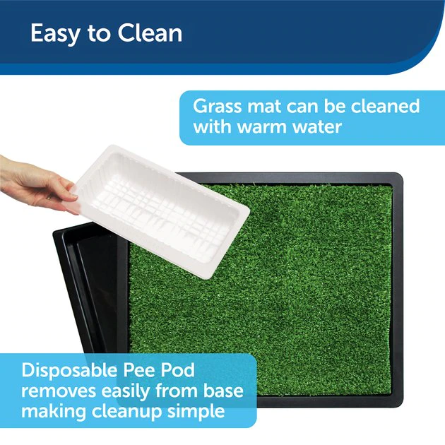 The PetSafe Pet Loo Portable Indoor & Outdoor Dog Potty is your backyard in a box. Ideal for apartments or in times when you can’t just let your pet out, this system gives your dog, cat or other small pet a convenient and more comfortable alternative to potty pads. The top layer lets your pet feel the grass under his paws and allows urine to quickly drain through. The reinforced base has a slight angle so all urine collects into a removable waste bin for super easy clean-up. When you can’t bring your pet to the backyard, bring the backyard to your pet!