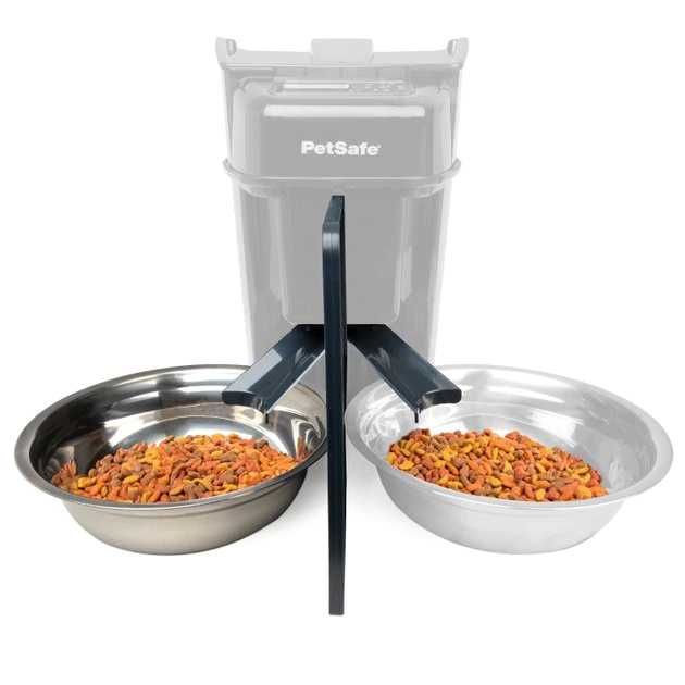 Feed two pets at once and put an end to mealtime mishaps with the PetSafe Two-Pet Meal Splitter & Bowl. This splitter attachment is designed for use with the PetSafe Healthy Pet Simply Feed Programmable Dog & Cat Feeder and the PetSafe Smart Feed 2.0 Wifi-Enabled Automatic Dog & Cat Feeder (each sold separately). The attachment dispenses kibble into two equal portions so you can feed two furbabies using just one feeder. Each kit comes with a splitter, one stainless steel bowl and an optional privacy panel to help reduce spats between greedy or private eaters. Plus, all parts are machine washable for easy cleanups.