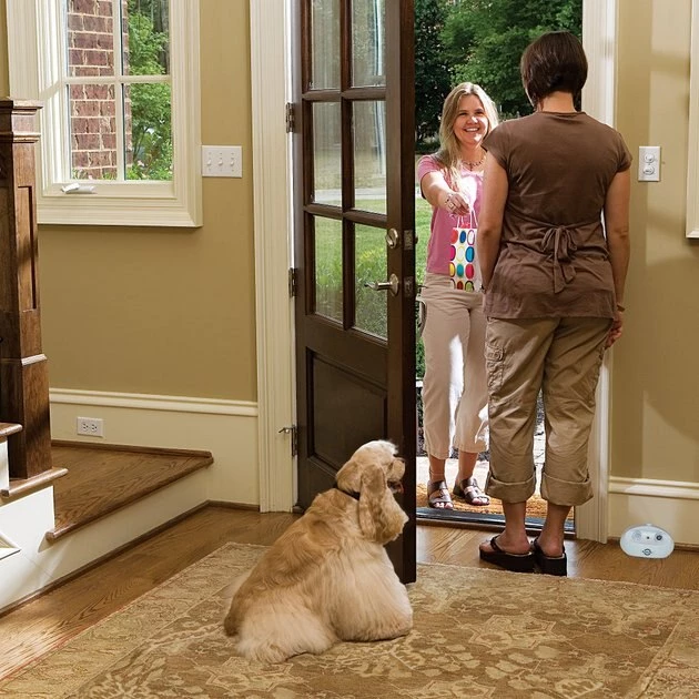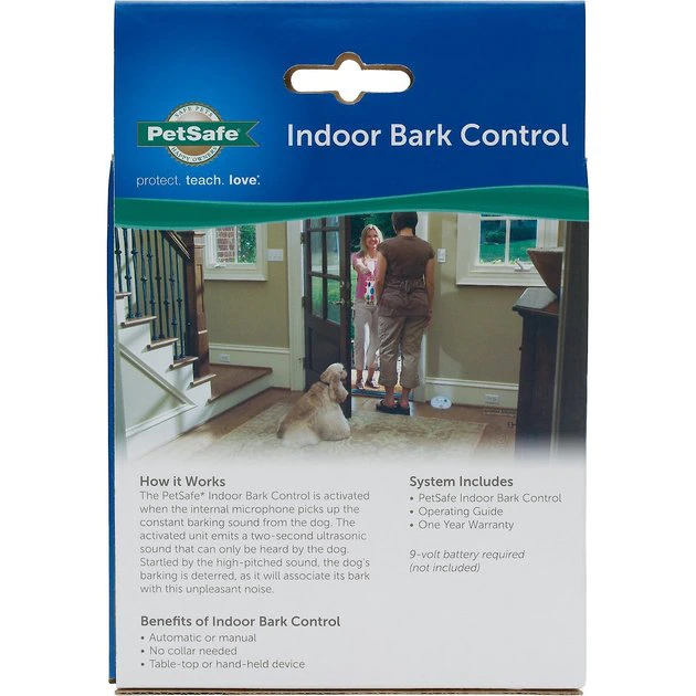 The PetSafe Indoor Bark Control detects barking and sends the ultrasonic tone up to 25 feet.