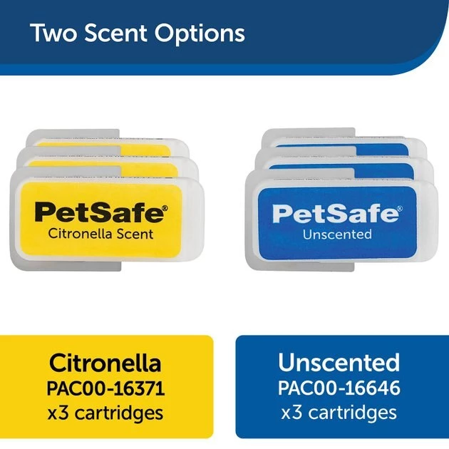 PetSafe Unscented Replacement Spray Cartridges are easy to install with no mess for pet parents. Designed to work with PetSafe anti-bark and training collars, these replacement cartridges are safe for your pup and 100% recyclable. Remove the old one and replace with one of these. The unscented spray is ideal for dogs with sensitivities to oils or fragrances. Works with the PetSafe Spray Bark and Training collars.
